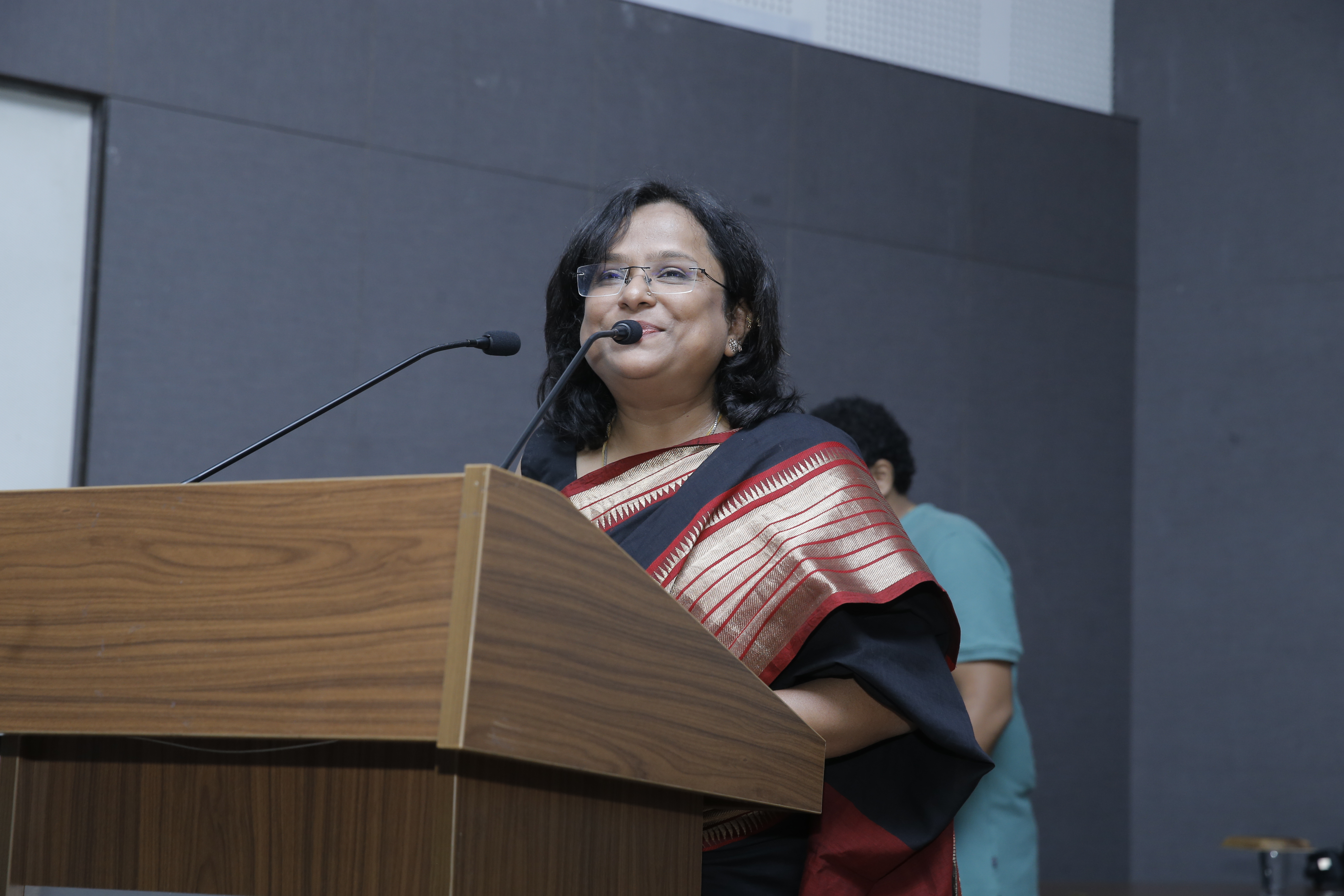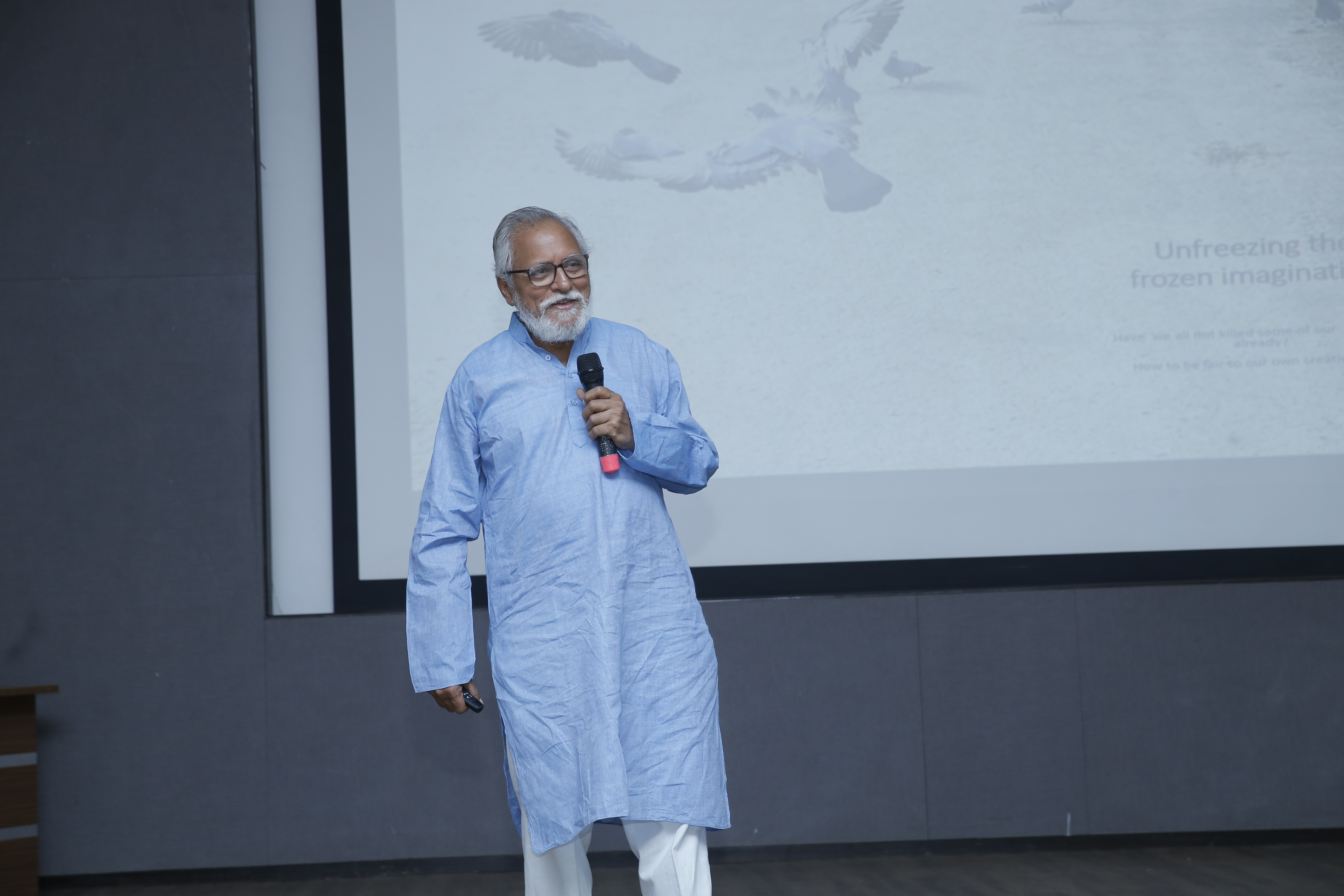 The speakers were Dr. Anamika Dey and Prof. Anil Gupta. First, Dr. Anamika Dey discussed HBNCRIIA (Honey Bee Network Creativity and Inclusive Innovation Awards India) and its operation, and also how many people benefited from it. Then, Prof. Anil Gupta explained various topics including “Upload to Download Ratio,” how to find various open patents, and discussed people who were innovators.